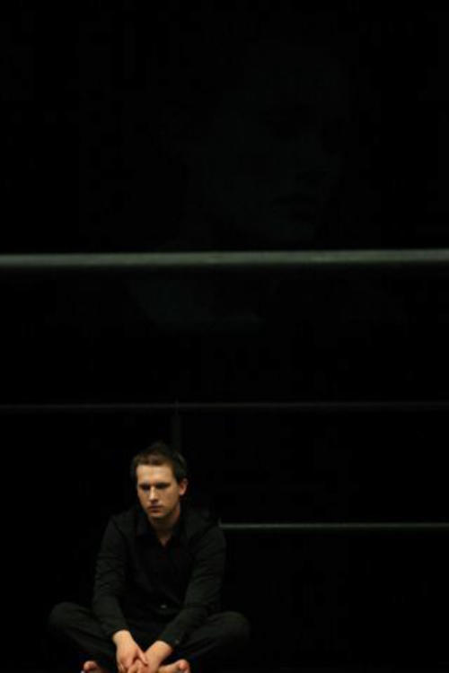 “Man sieht die boxringartige Bühne, eine
